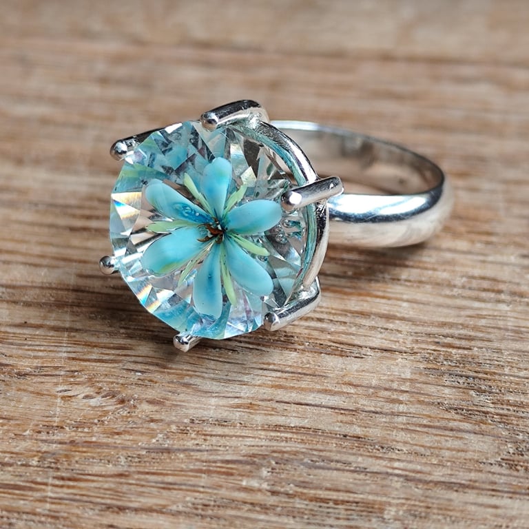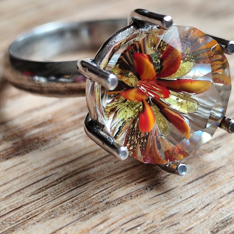 Recyclage : verre en cristal de famille retaillé pour faire 3 bagues sur une monture en argent ! Nouveautés 2025 : Implosion avec facettes, bague ou collier.