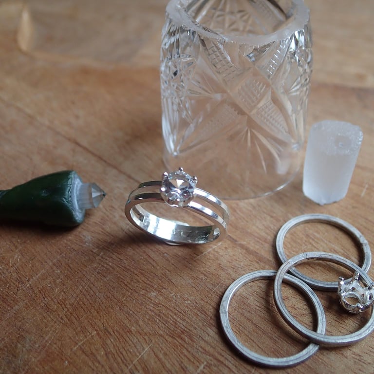Recyclage : verre en cristal de famille retaillé pour faire 3 bagues sur une monture en argent ! Nouveautés 2025 : Implosion avec facettes, bague ou collier.