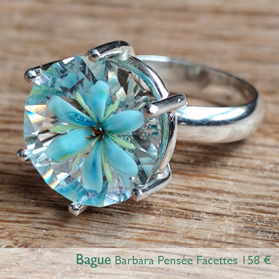 La collection Facettes : les perles de verre sont filées en boules ou en forme cylindrique avec une ou plusieurs couleurs. Elles sont ensuite taillées manuellement sur une facetteuse (sorte de ponceuse horizontale) selon différents diagrammes, puis montées sur argent massif. La taille d'une perle prend entre 2 et 3 heures de travail (dégrossissage, taille du rondiste, du pavillon et de la couronne, polissage). Certaines faces nécessitent 4 types de ponçages ou polissage.