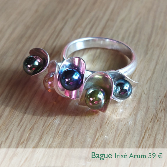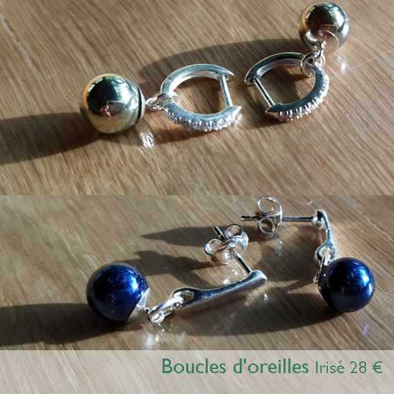 La collection Irisé est composé de perles ayant les reflets des perles "de tahiti" : le verre est travaillé à la flamme réductrice pour obtenir cet effet irisé avec du verre Double Helix.
